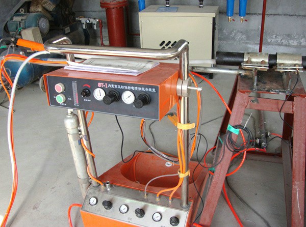 管道內(nèi)噴粉機(jī)大多數(shù)噴霧向四周擴(kuò)散噴開(kāi),專業(yè)的長(zhǎng)桿內(nèi)壁噴槍或內(nèi)壁涂裝器在移動(dòng)過(guò)程中管壁周圍都被噴上液料。內(nèi)壁涂裝器或內(nèi)壁噴槍要和配套的液料輸送泵和料管成套使用,液料輸送泵將漆料輸送到內(nèi)壁噴槍或內(nèi)壁涂裝器,經(jīng)過(guò)特殊的噴咀霧化。